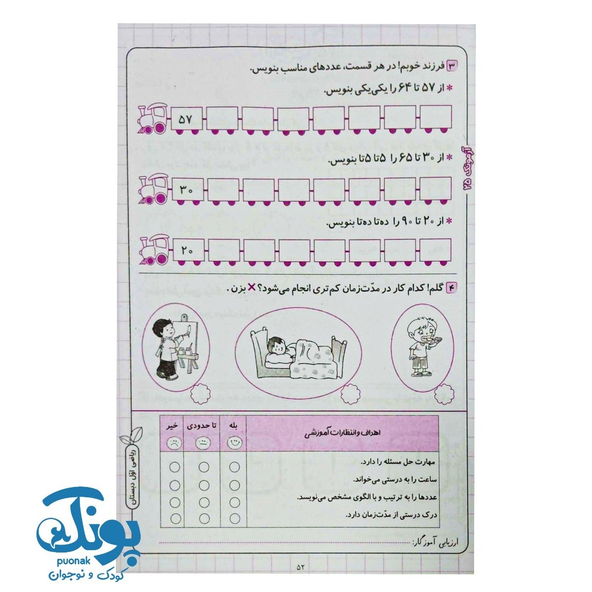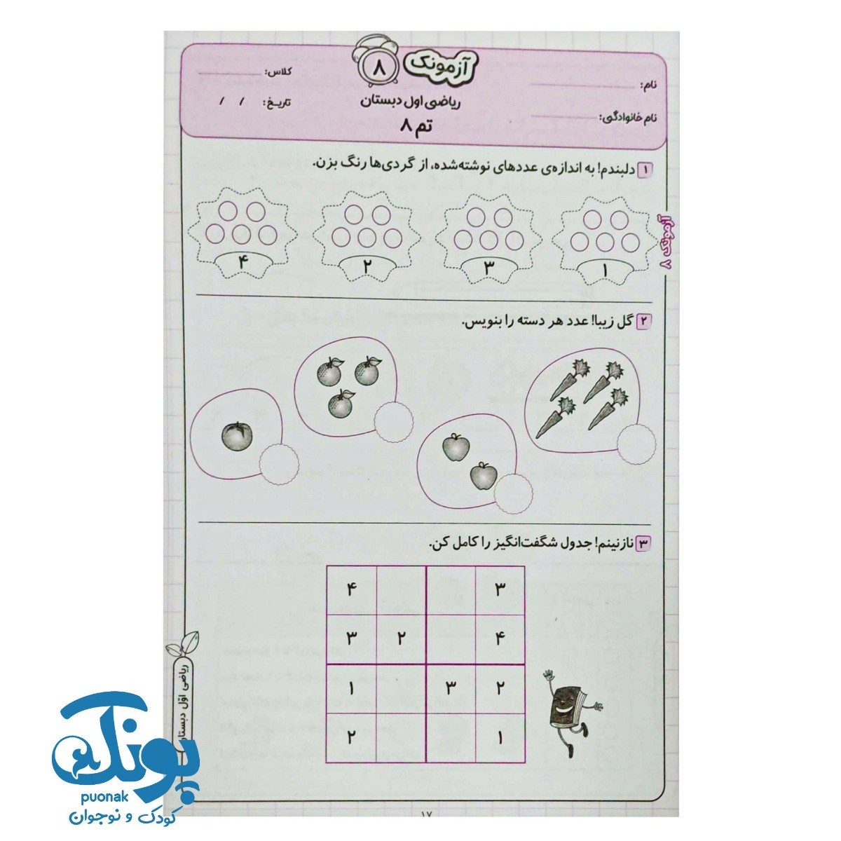 - شامل آزمونک ۲۵ تم ریاضی پایهی اول دبستان