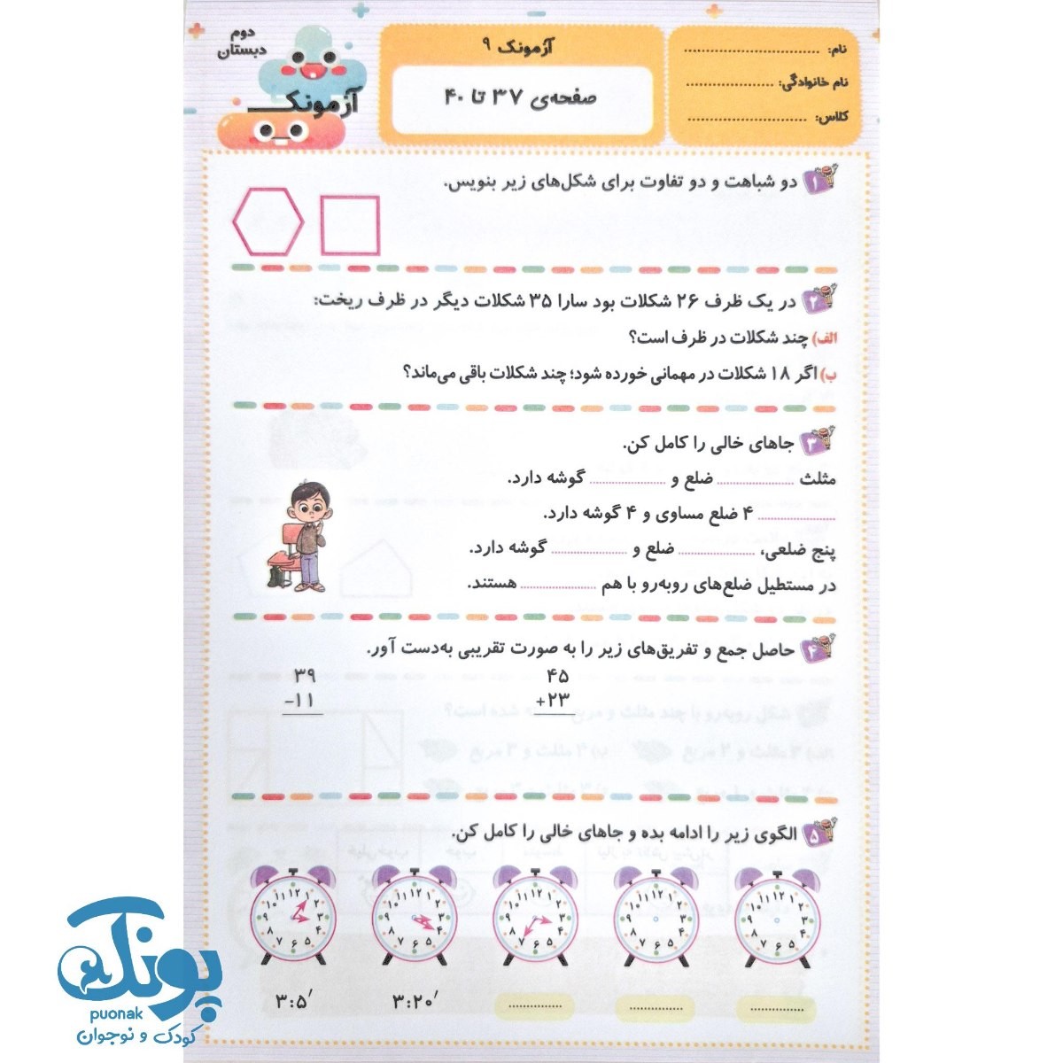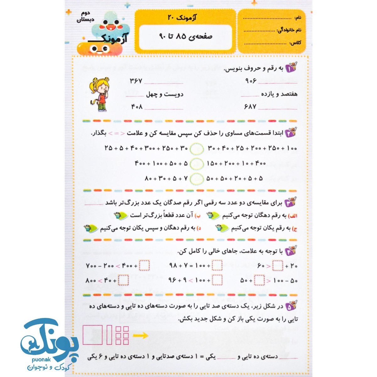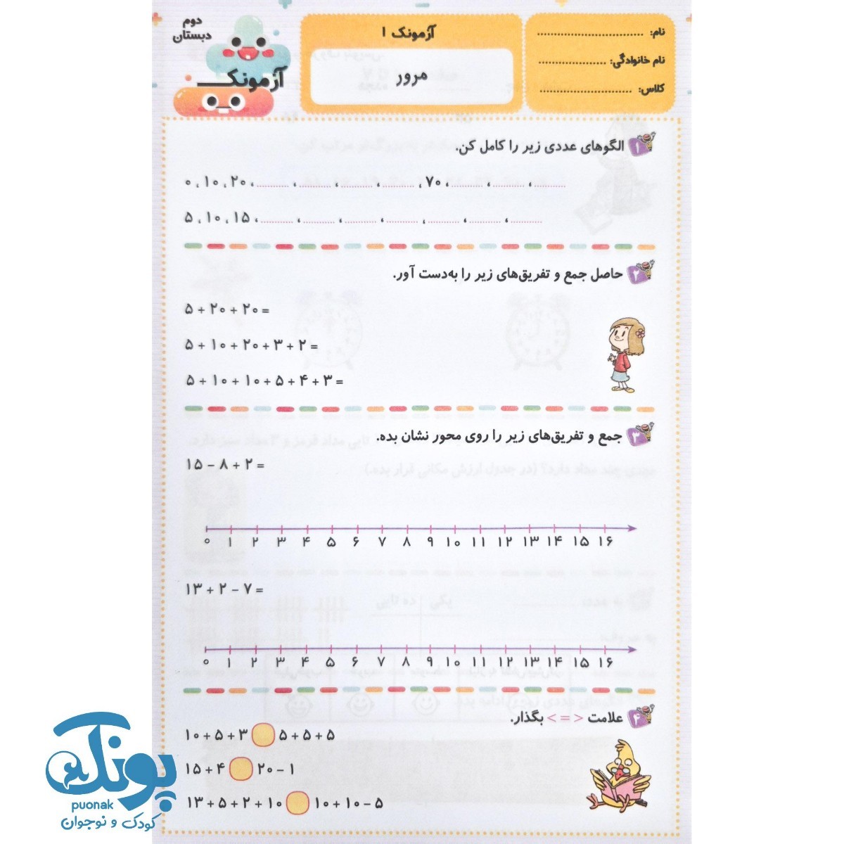 آزمونک ریاضی و فارسی دوم دبستان سرمشق