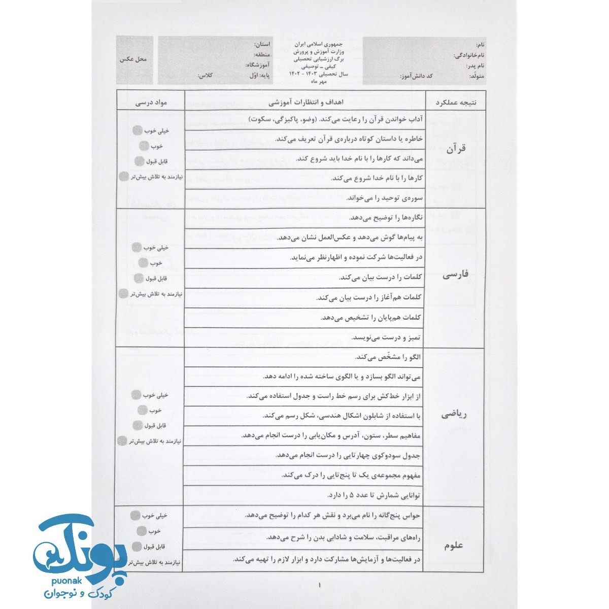 اولین نفری باشید که دیدگاهی را ارسال می کنید برای “ارزشیابی مستمر اول سرمشق (آزمون های ماهیانه)” لغو پاسخ