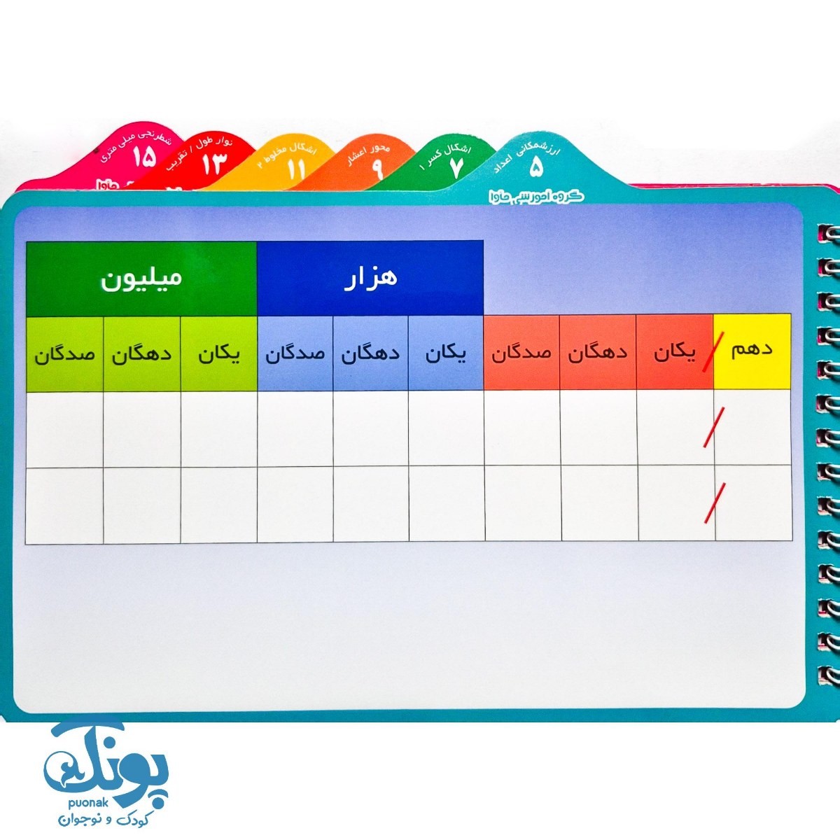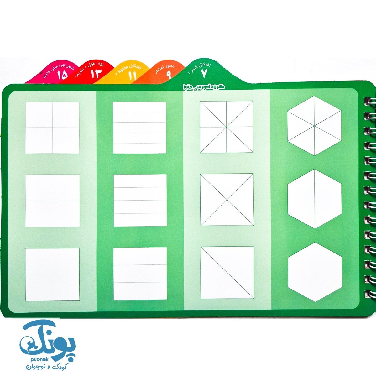- صفحات تمرینی متنوع مانند محور اعداد صحیح، محور اعشار و اشکال کسر
