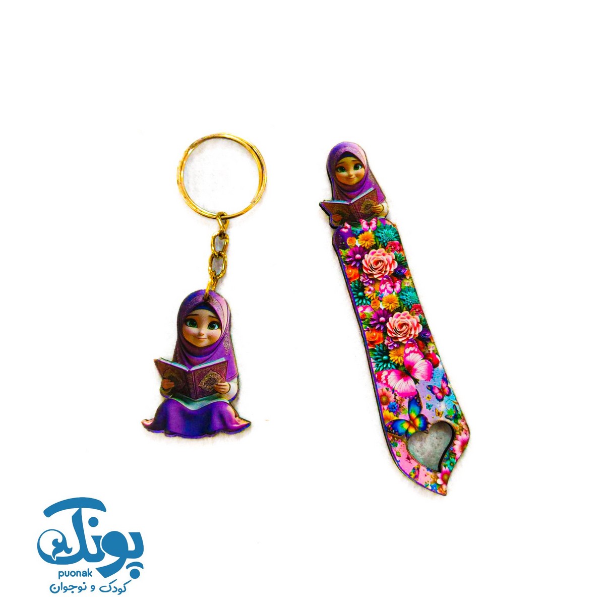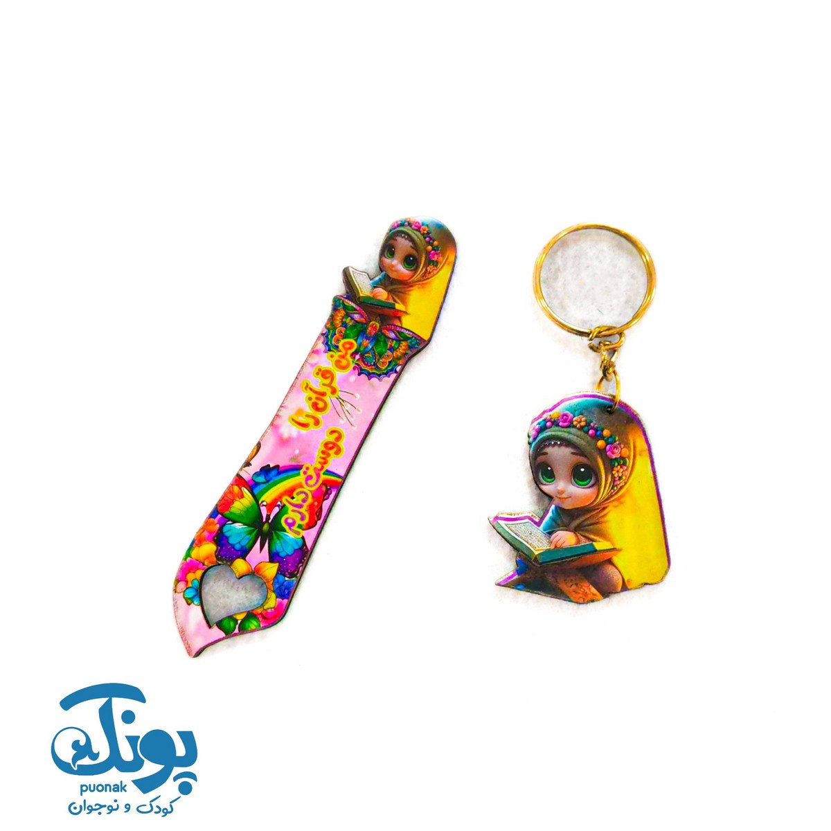 رحل قرآن و نشانگر و جاکلیدی دخترانه چوبی