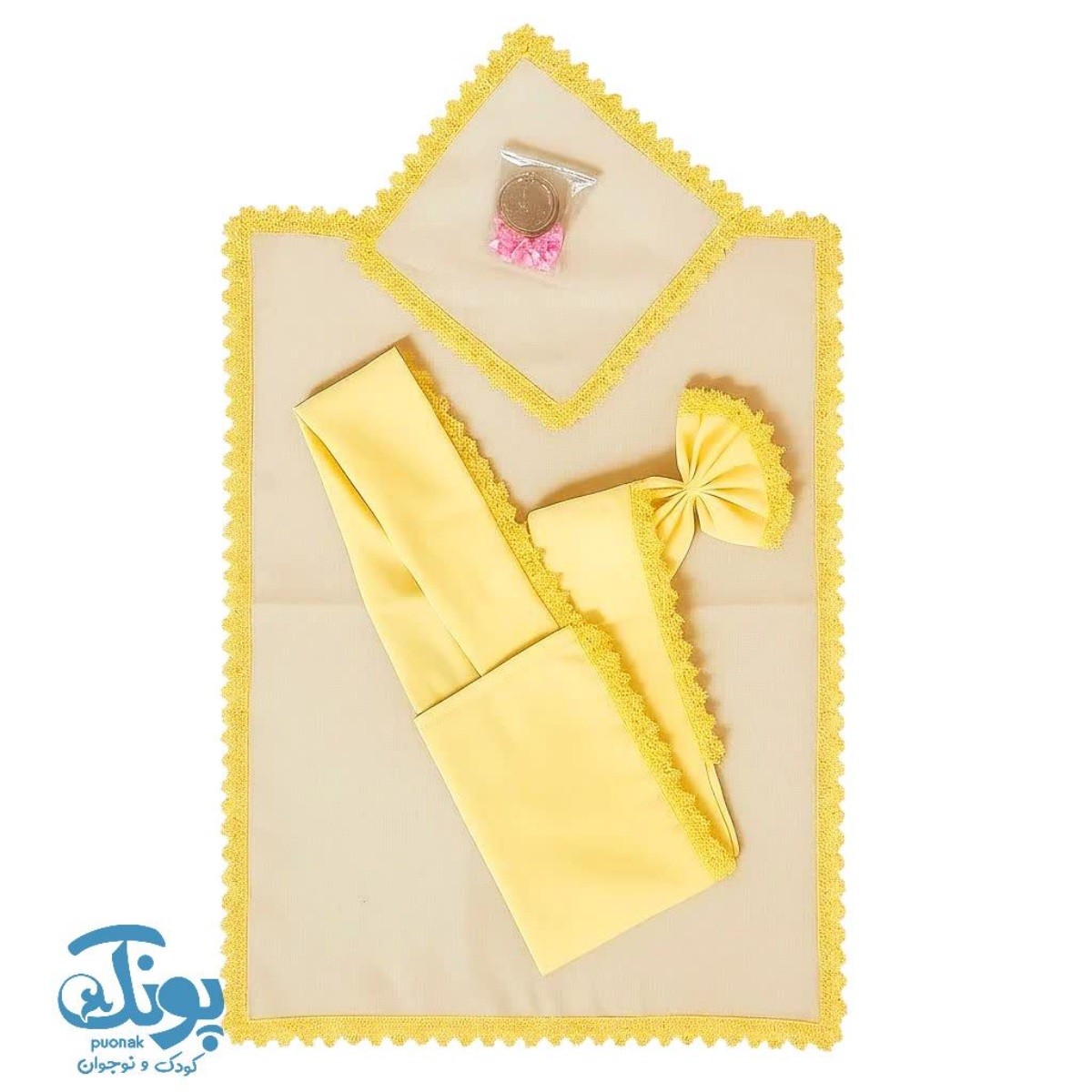 - چادر تترون زرد لطیف با نواردوزی ظریف و دخترانه