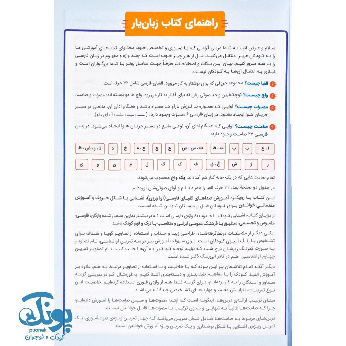 کتاب آموزش حروف الفبا زبان یار ویژه پیش دبستان